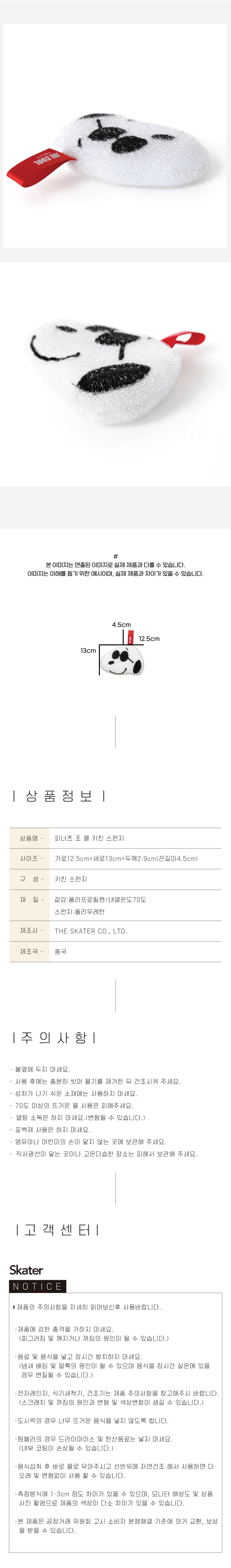 | 품명 및 모델명 | 피너츠 조쿨 키친 스펀지 | ||