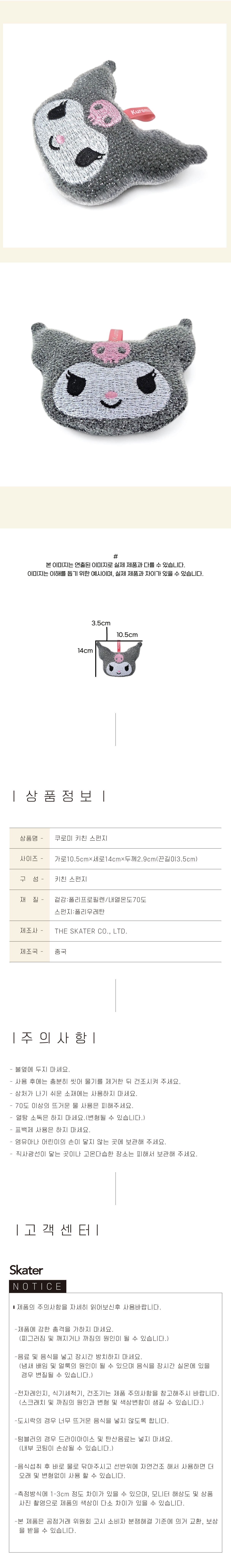 | 품명 및 모델명 | 쿠로미 키친 스펀지 | ||