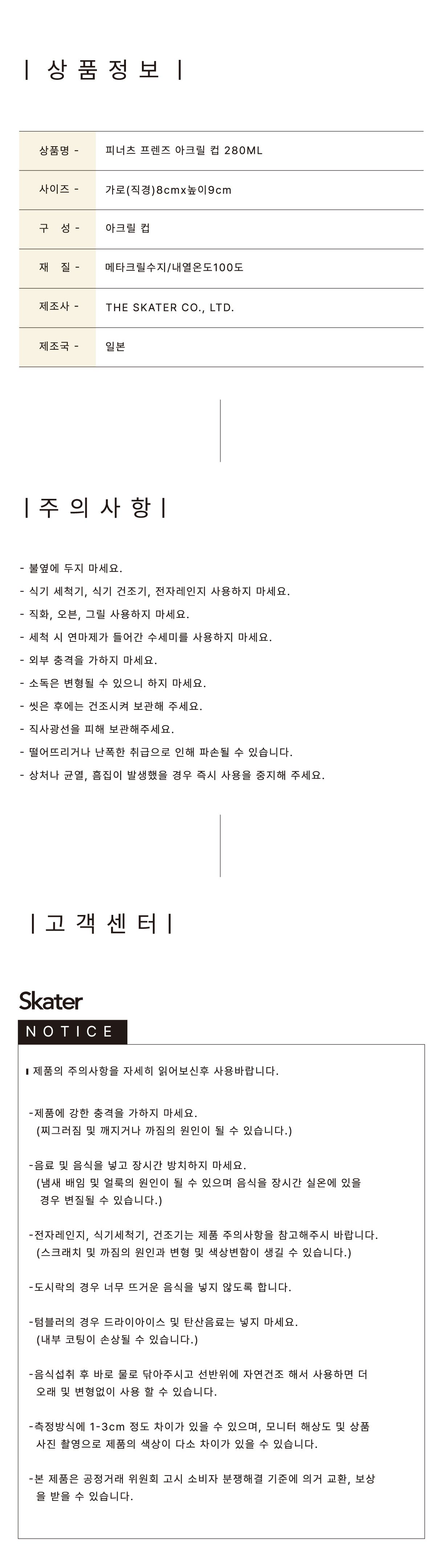 | 품명 및 모델명 | 피너츠 프렌즈 아크릴 컵 280ml | ||