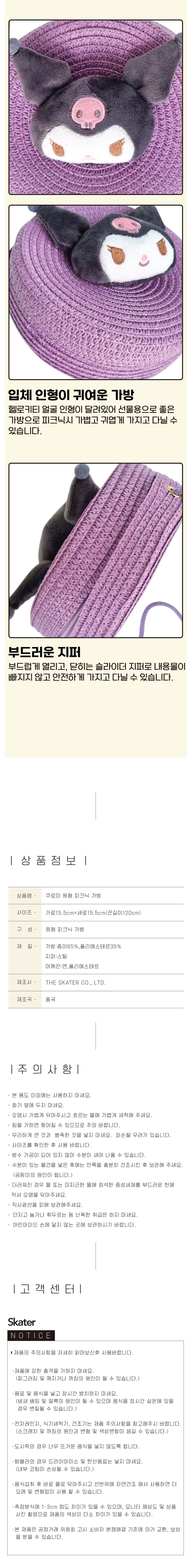 | 품명 및 모델명 | 쿠로미 원형 피크닉 가방 | ||