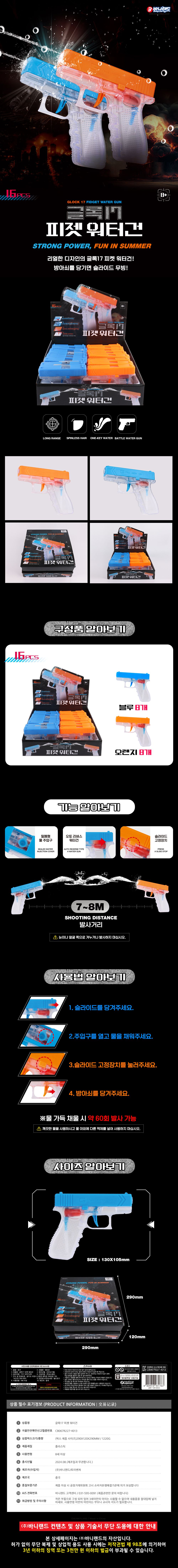 | 품명 및 모델명 | 글록17 피젯 워터건 (랜덤) | ||