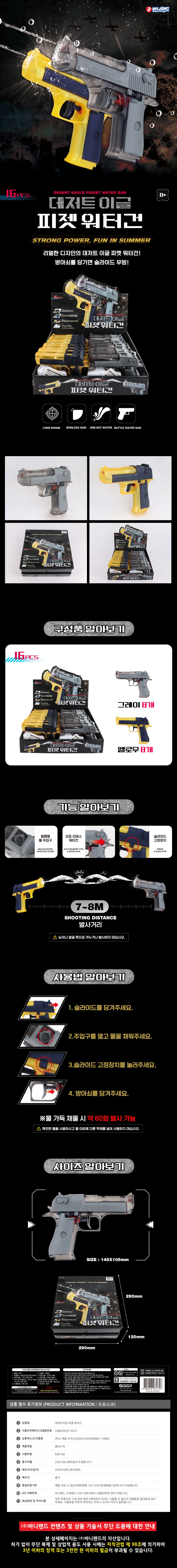 | 품명 및 모델명 | 데저트 이글 피젯 워터건 (랜덤) | ||
